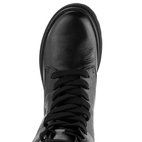 Stylové vyšší kotníkové boty značky Ara v černé barvě jsou ideálním doplňkem pro podzimní a zimní sezónu. Svršek z kvalitní kůže s jemnou strukturou a kulatá prostorná špička zajišťují maximální pohodlí. Pro snadné obutí jsou vybaveny funkčním zipem na vnitřní straně a šněrováním s kulatými tkaničkami, které umožňují optimální nastavení šíře. V kotníkové části je všitá široká pruženka pro vyšší komfort nošení. Uvnitř najdete měkkou vyjímatelnou stélku a textilní podšívku. Vyšší podešev s hrubým vzorkem a širokým stabilním podpatkem o výšce 4,5 cm poskytuje skvělou stabilitu. Výška kotníku je 18 cm bez podpatku. Perfektní volba pro každodenní nošení, která kombinuje styl a pohodlí.