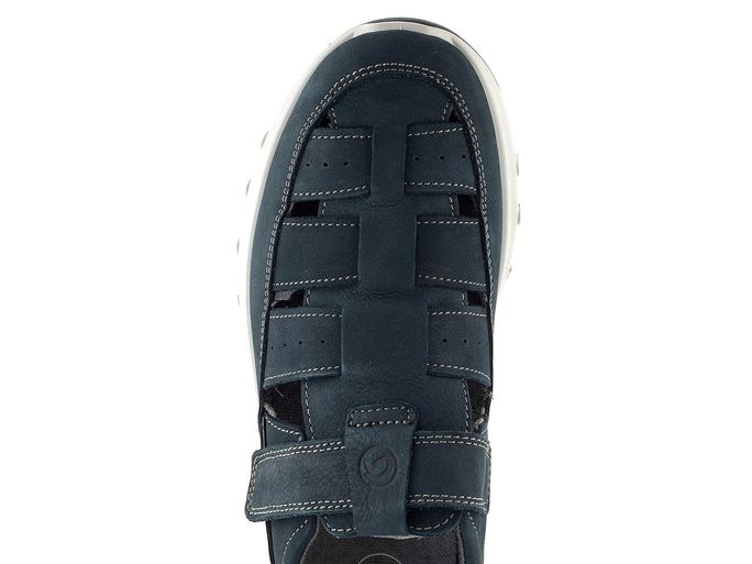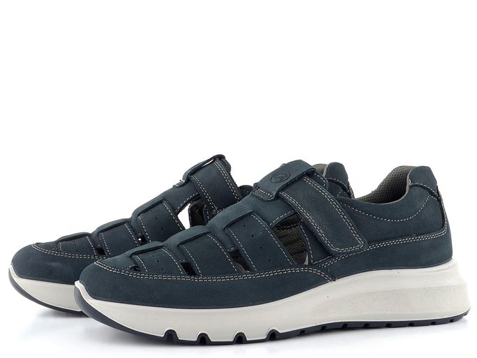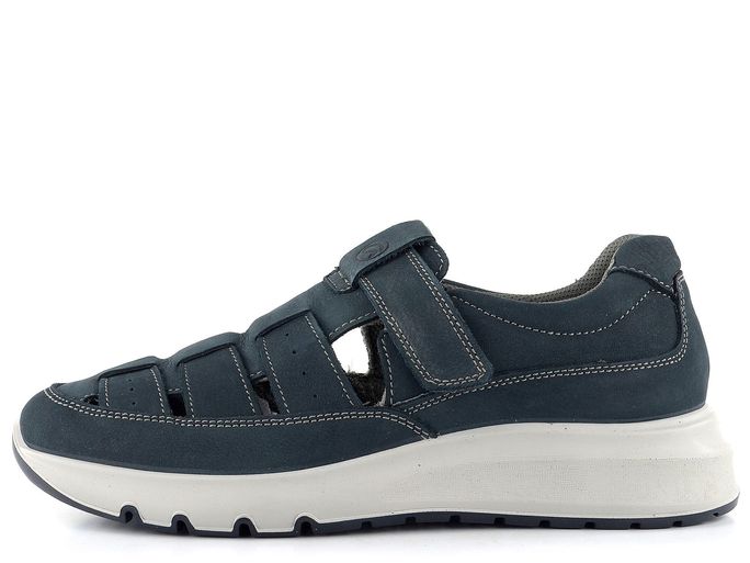 Pánské širší polobotky z nubukové kůže v tmavě modré barvě se zapínáním na suchý zip a s vyjímatelnou stélkou.