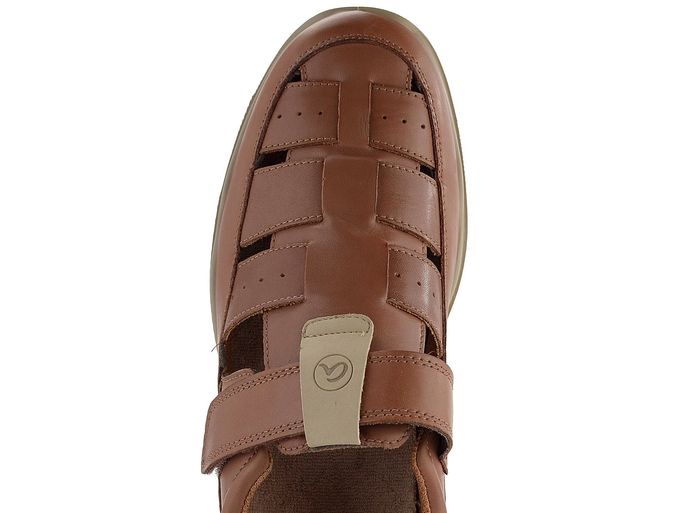Pánské vzdušné kožené polobotky v hnědé barvě s upínacím páskem na nártu.