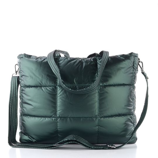 Prošívaná dámská kabelka od značky Ara spojuje styl a funkčnost v jednom elegantním kousku. Její tmavě zelená barva a hedvábně lesklá textilie s čtvercovým vzorem dodávají kabelce moderní vzhled, který osloví každou ženu. S rozměry 42 x 32 cm a hloubkou dna 8 cm nabízí dostatek prostoru pro formát A4 a další nezbytnosti.