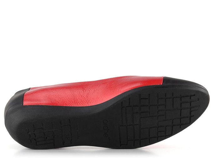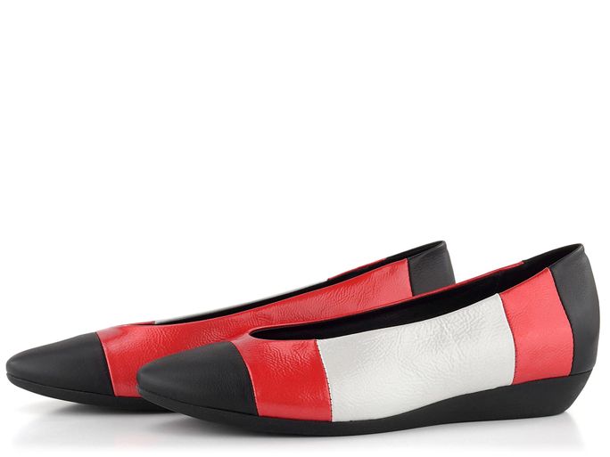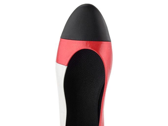 Dámské baleríny v kontrastních barvách černé, červené a bílé, s latexovou podešví z přírodního kaučuku.