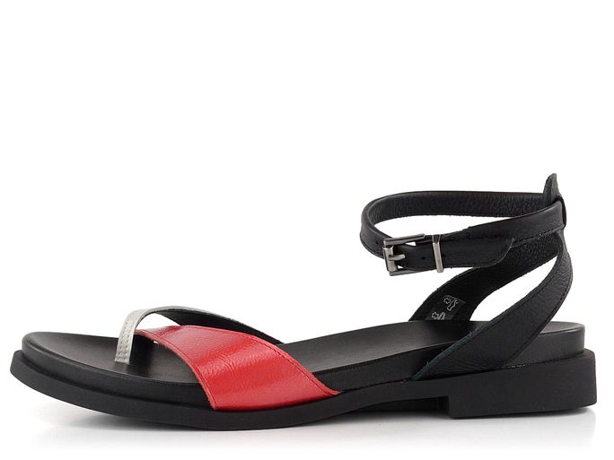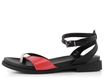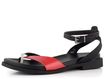 Originální dámské kožené sandálky v kontrastních barvách, s nastavitelným kotníkovým páskem a nízkým popatečkem.