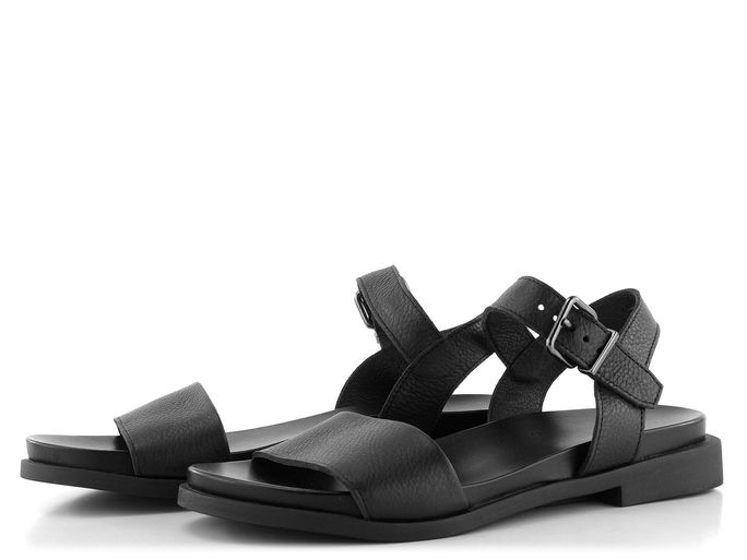 Luxusní dámské kožené sandálky v černé barvě, s měkkou tvarovanou stélkou a nízkým podpatečkem.