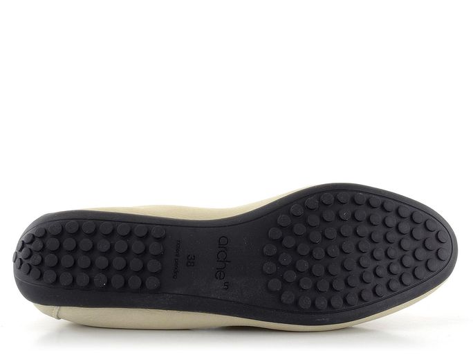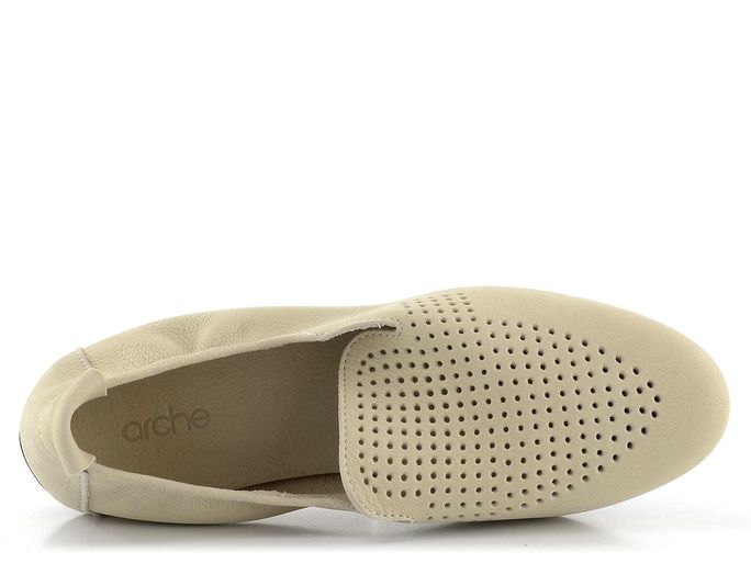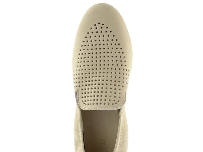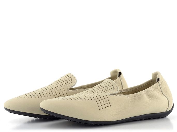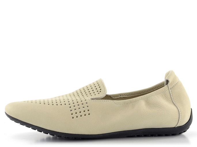 Luxusní dámské mokasíny z nubukové kůže ve světle béžové barvě s prořezávaným vzorem na svršku.