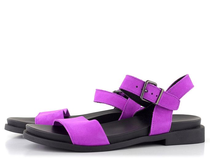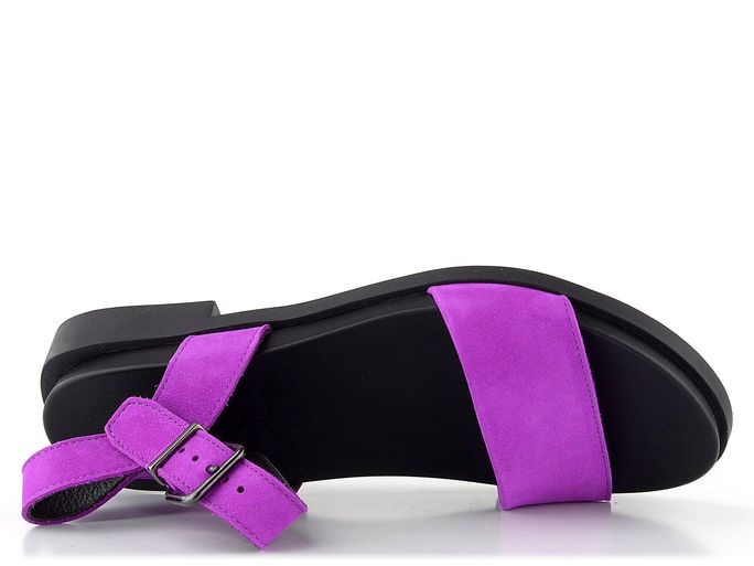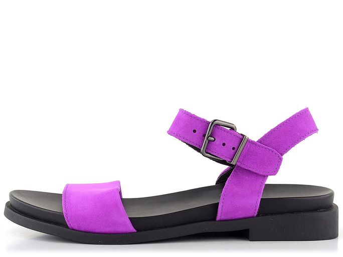 Luxusní dámské nubukové sandálky ve fuchsiově fialové barvě, s měkkou tvarovanou stélkou a nízkým podpatečkem.