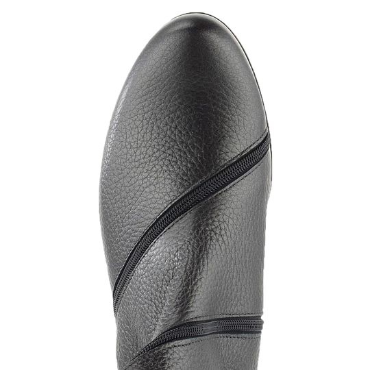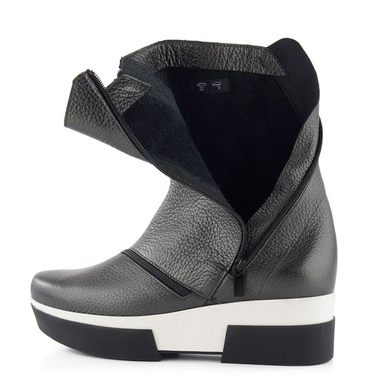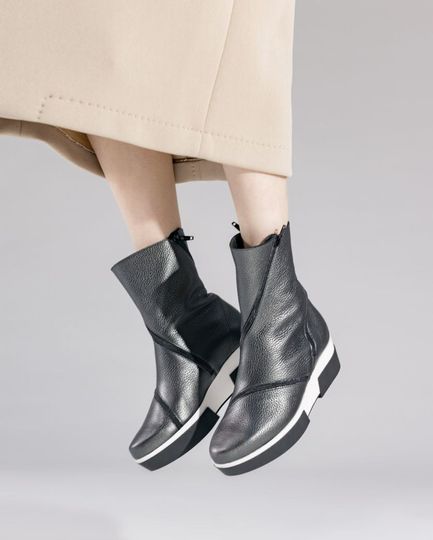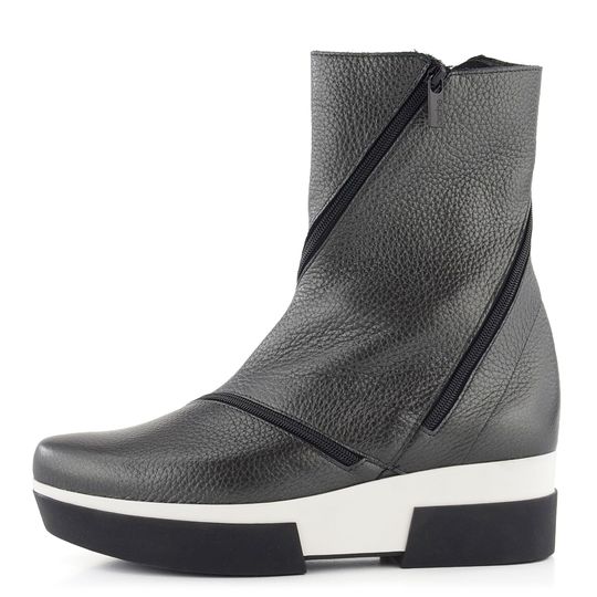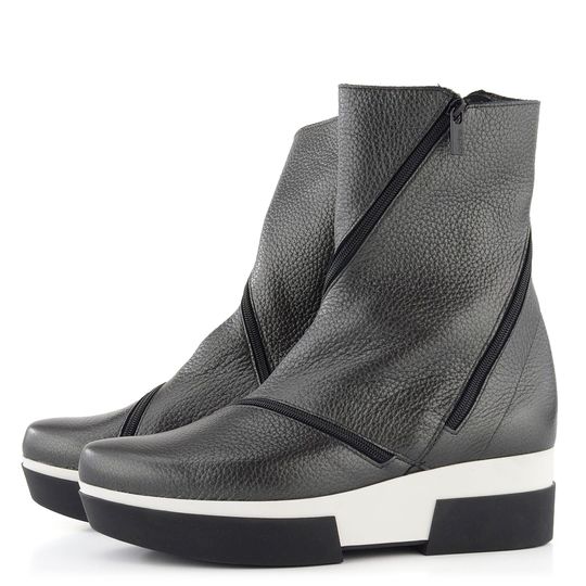 Luxusní dámský kotník v lehce extravagantním stylu s funkčními, šikmo našitými zipy.
