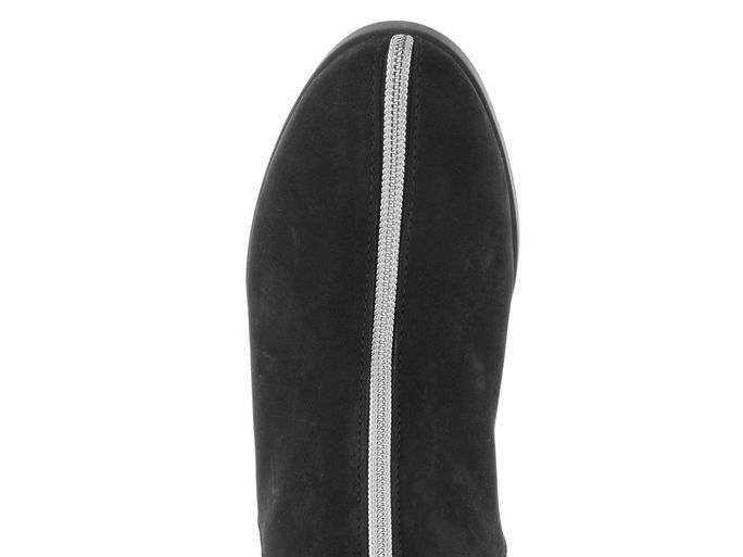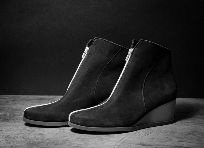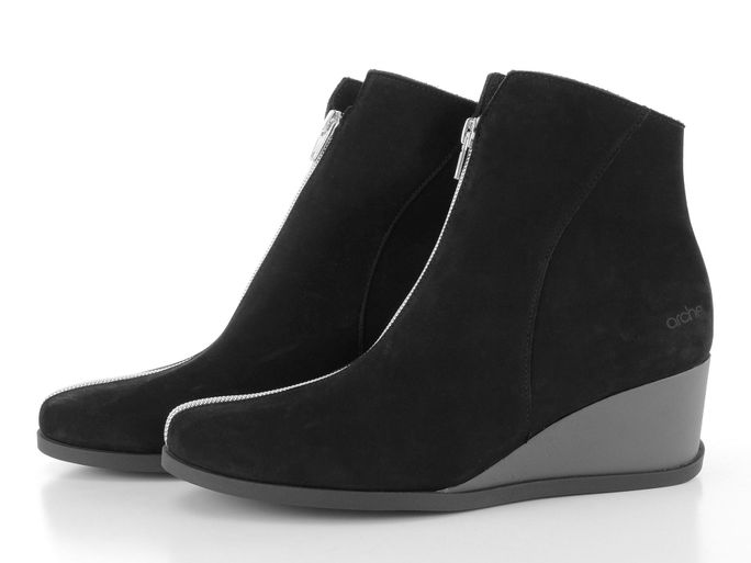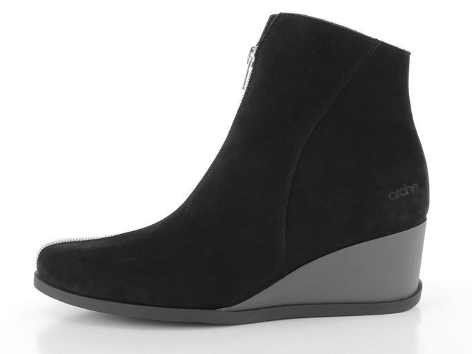 Dámský kotník z pevné nubukové kůže s nártovým zipem a s mírným pohodlným klínkem.