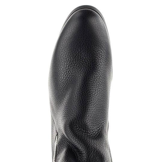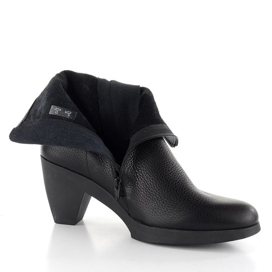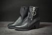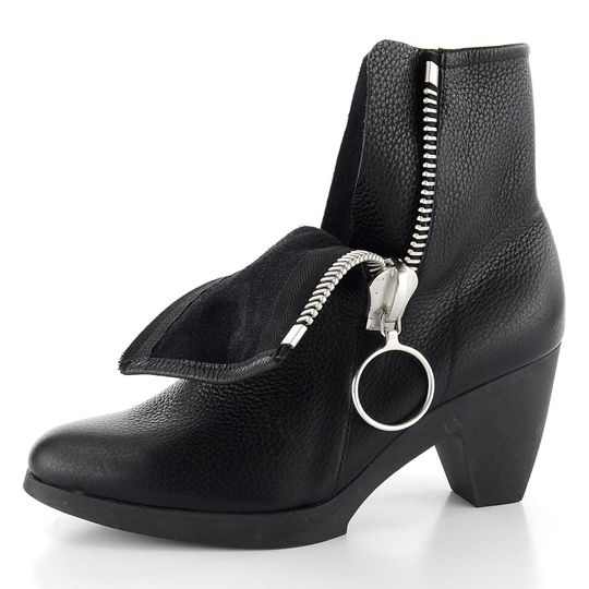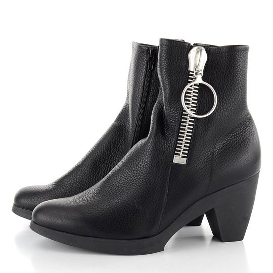 Luxusní dámský kotník s výrazným zipem, vyrobený ze strukturované kůže černé barvy.