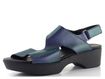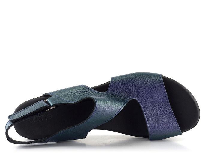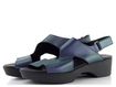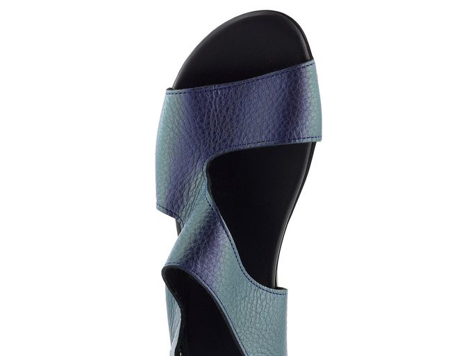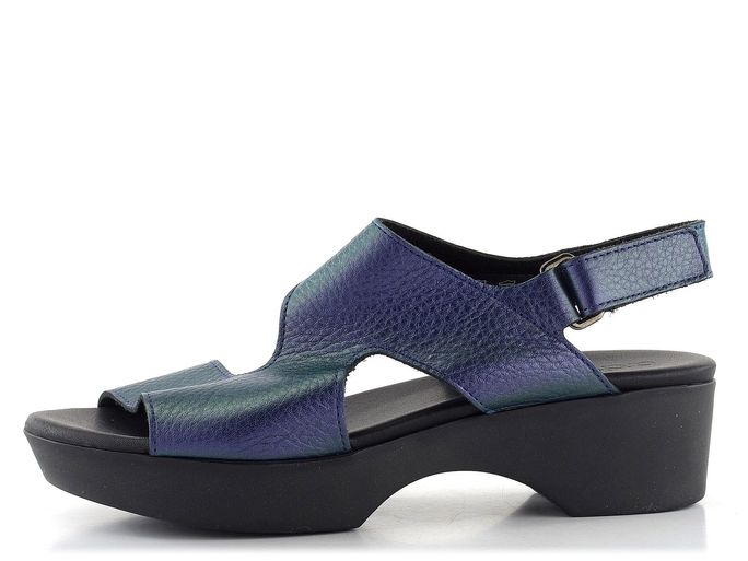 Dámské sandálky z fialové metalické kůže, s upínáním na suchý zip a vyšší platformou.