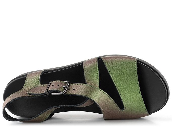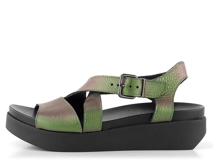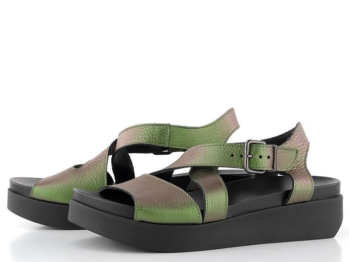 Luxusní dámské sandály ze zelené metalické kůže, na vysoké platformě s klínkem.