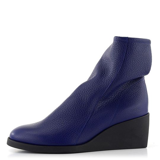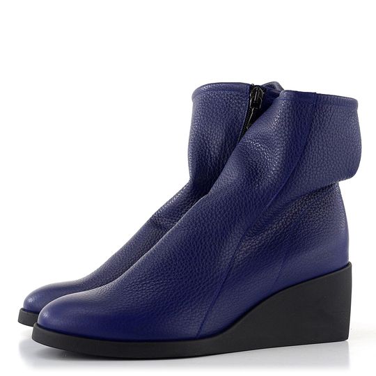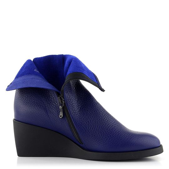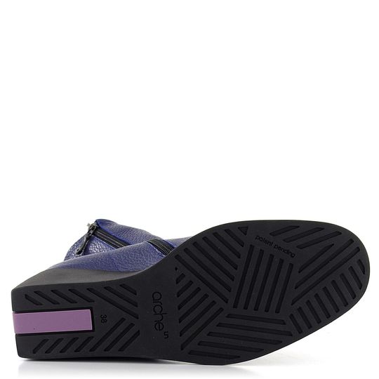Dámský fialový celokožený kotník s postranním zipem a módním pohodlným klínkem.