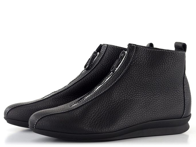 Jednoduchý dámský nevyteplený kotník s funkčním zipem na nártu.