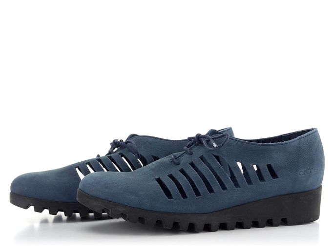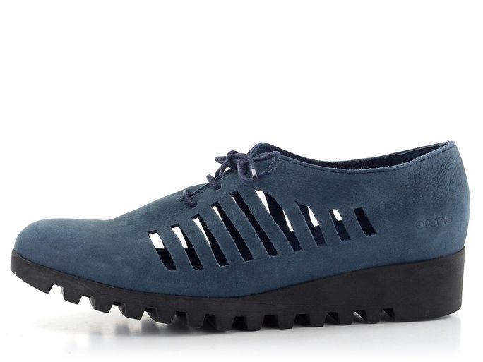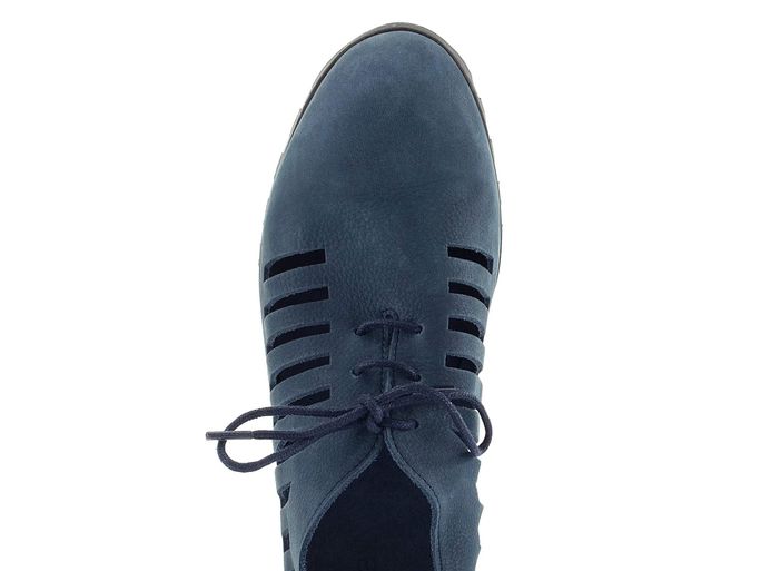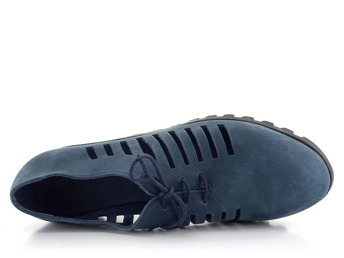 Originální dámské polobotky vyrobené z nubukové kůže v modrošedé barvě s prořezáváním na bocích.