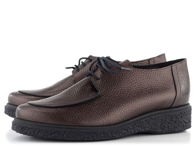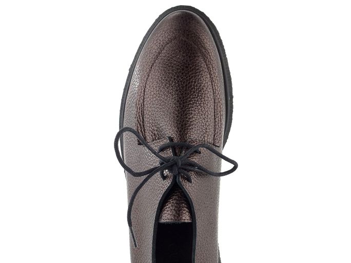 Pohodlné dámské polobotky v temné vínové barvě s metalickým efektem a bytelnou vyšší podešví.