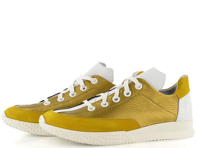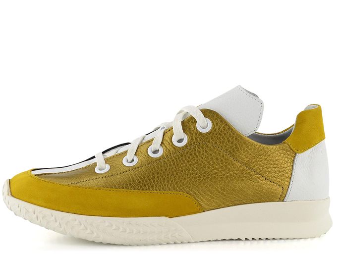 Luxusní a nepřehlédnutelné celokožené tenisky ve zlaté metalické barvě.