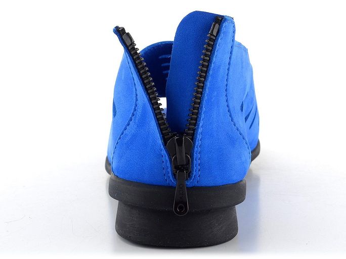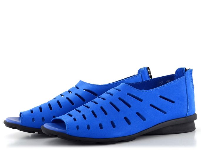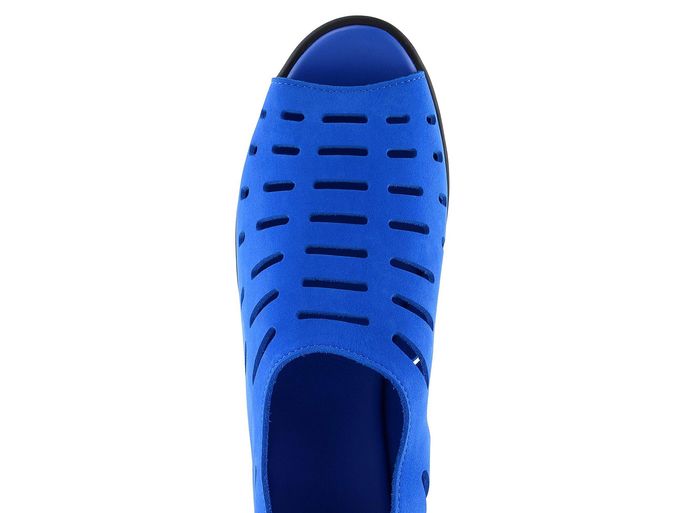 Dámské sandálky z nubukové kůže s otevřeným palcem a patním zipem, v nepřehlédnutelné a syté modré barvě.