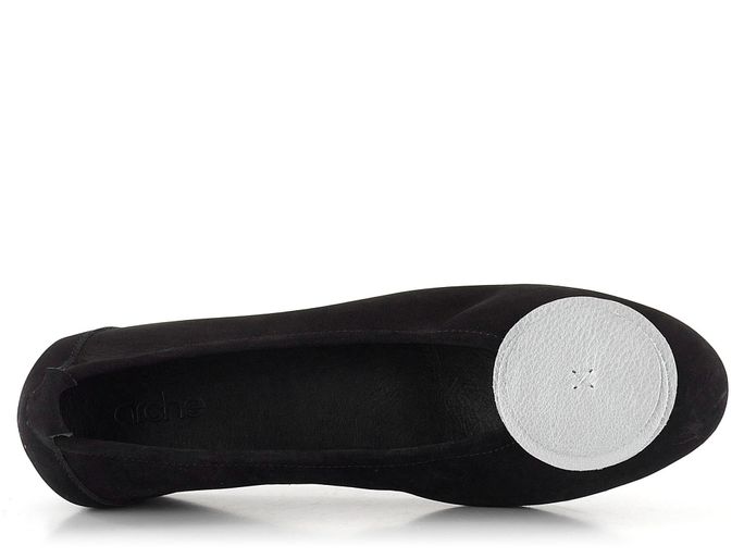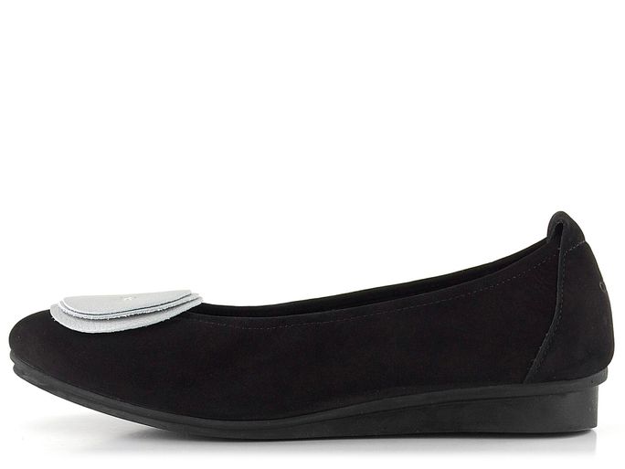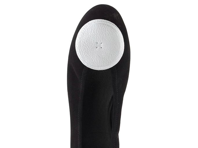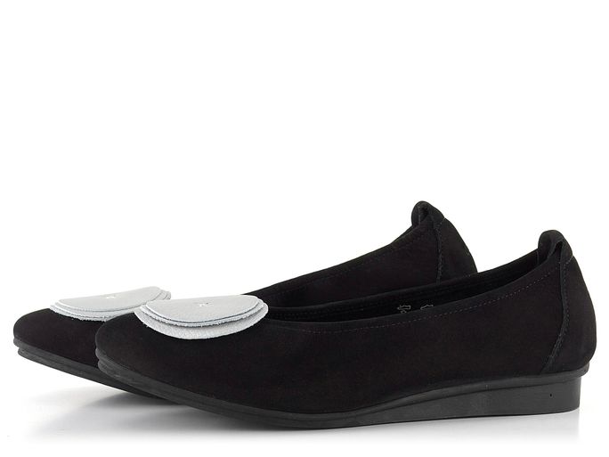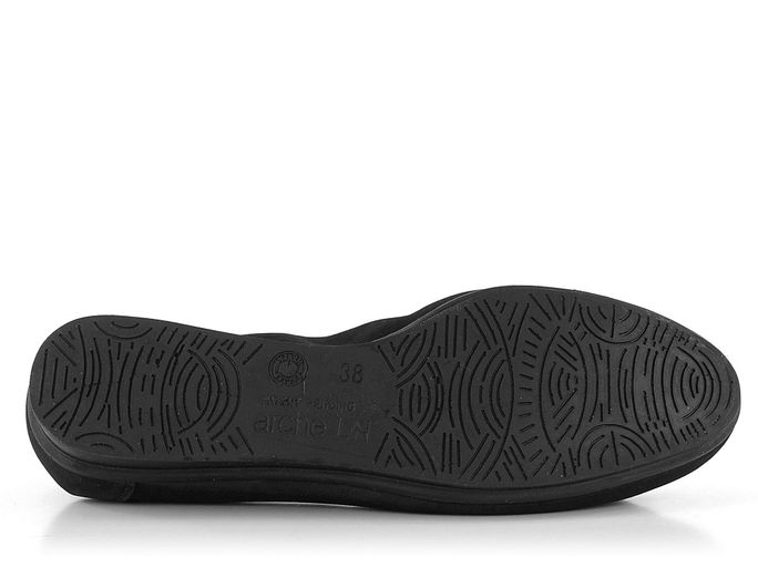 Luxusní dámské balerínky z nubukové černé kůže se zajímavou ozdobou na špičce.