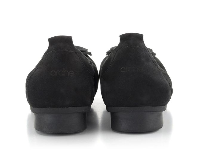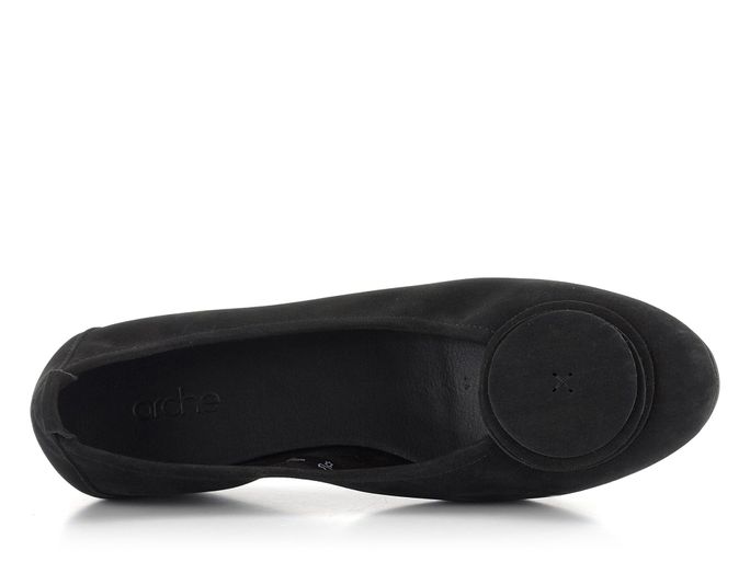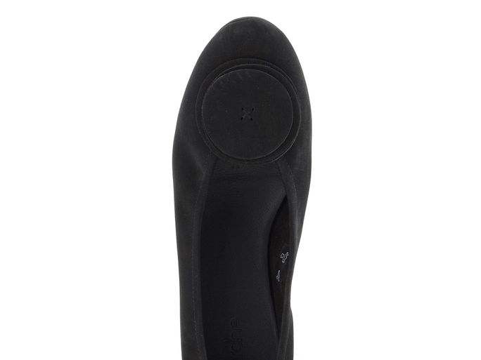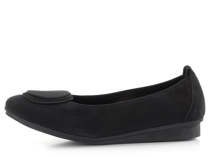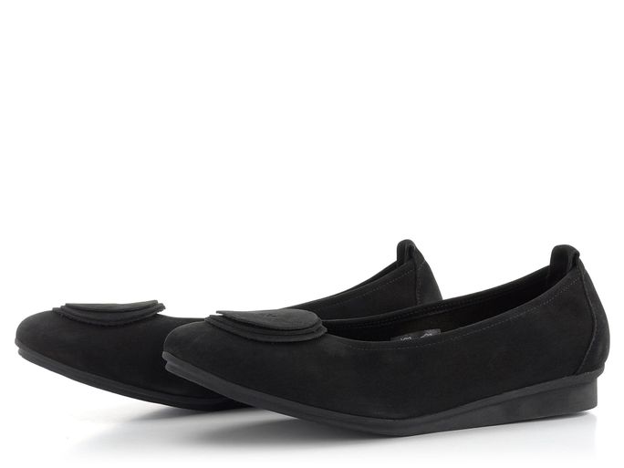 Luxusní dámské balerínky z nubukové černé kůže se zajímavou ozdobou na špičce.