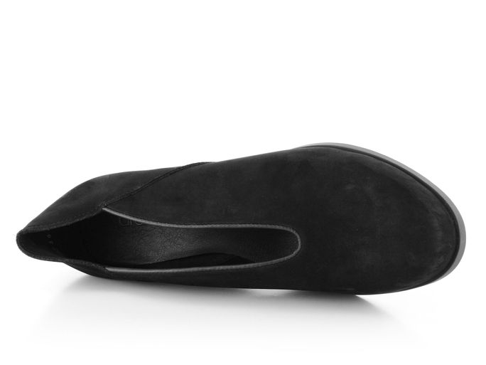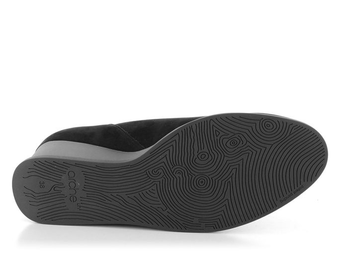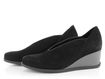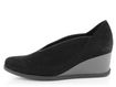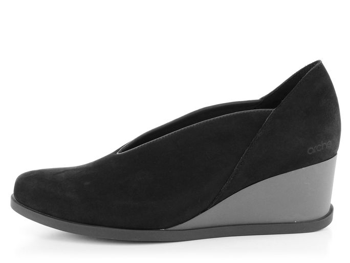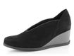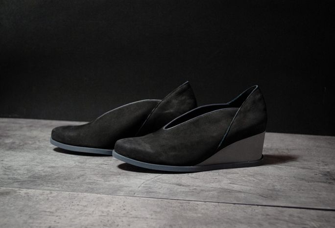 Dámské lodičky na klínu z luxusní telecí kůže v černé barvě a se zajímavým prostřihem na nártu.