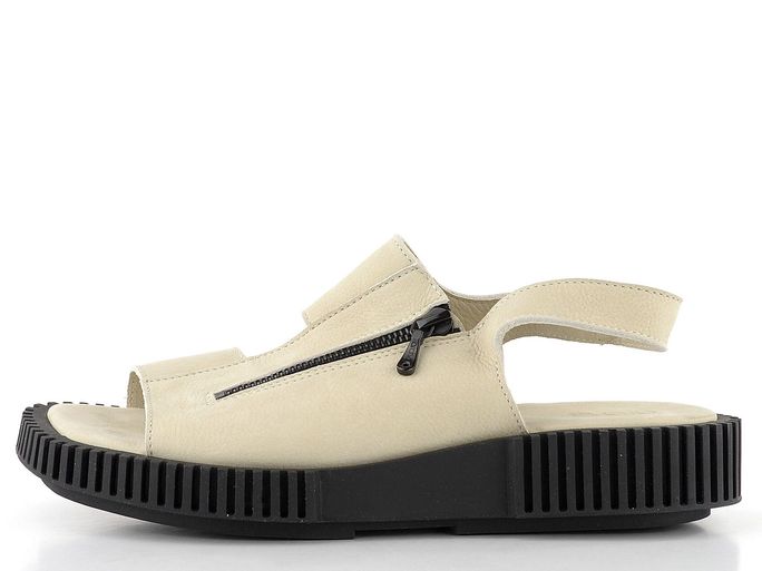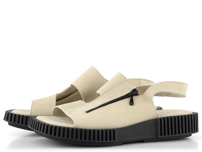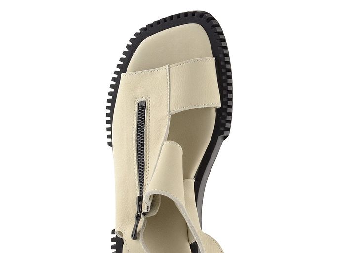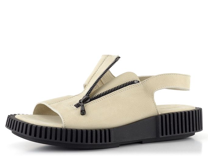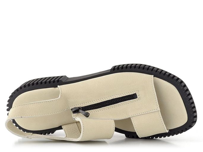 Originální dámské nubukové sandály ve světlé béžové barvě s funkčním předním zipem a robustní podešví.
