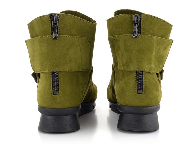 Originální dámská kotníková obuv v nevšedním zeleném odstínu a s funkčním zipem na patě.
