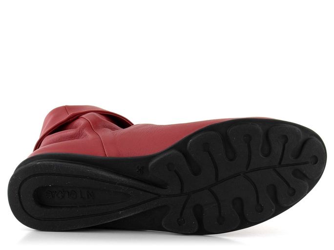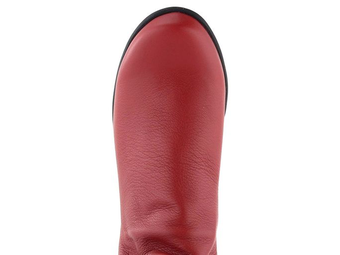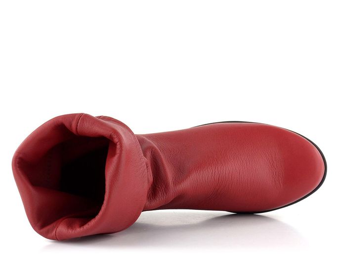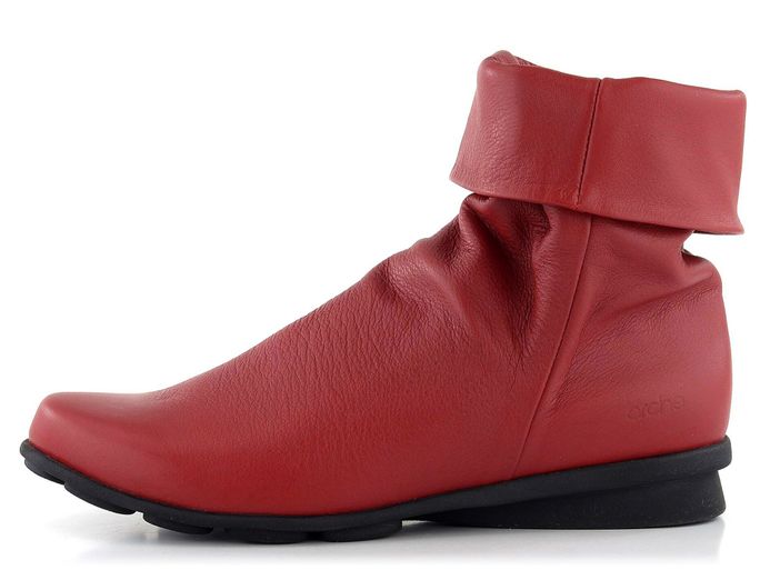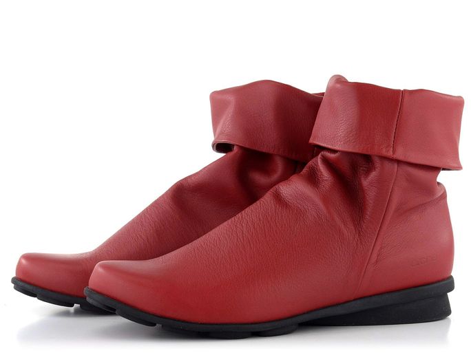 Dámský ohrnovací kotník v červené barvě, s podešví z přírodního kaučuku.
