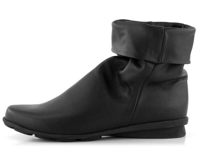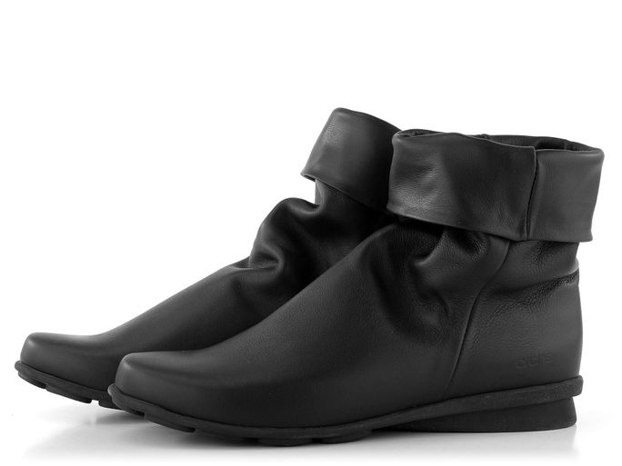 Dámský ohrnovací kotník v černé barvě, s podešví z přírodního kaučuku.