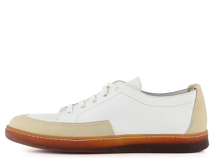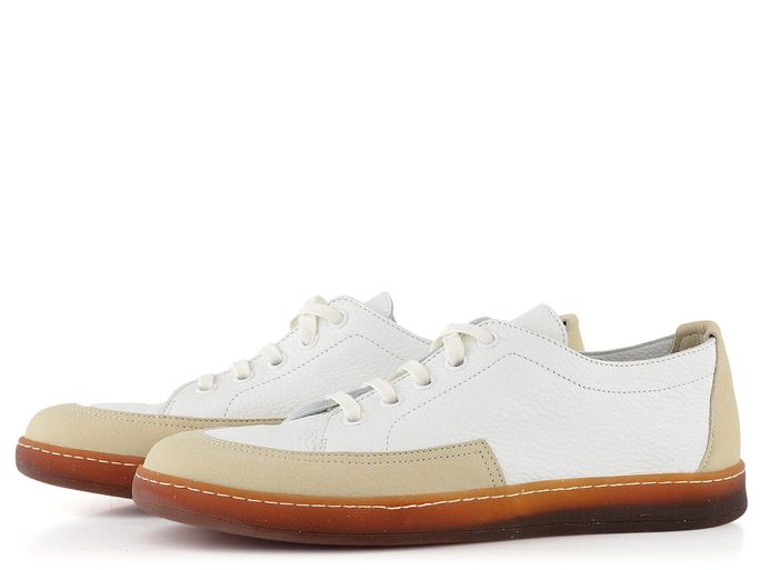 Luxusní pánské kožené polobotky na šněrování v kombinaci bílé a béžové barvy.