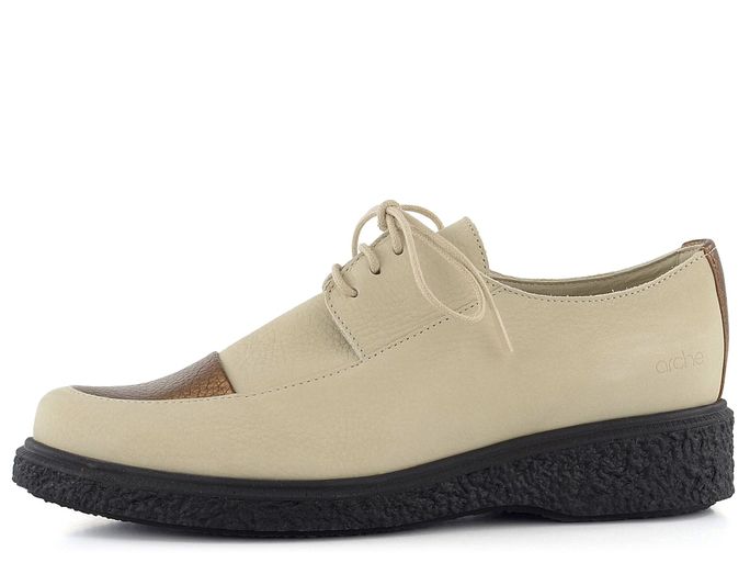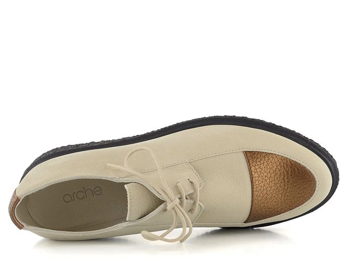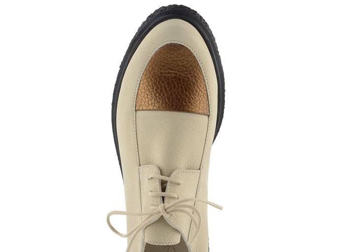 Pohodlné dámské polobotky v béžové a bronzové kombinaci a na bytelné vyšší podešvi.