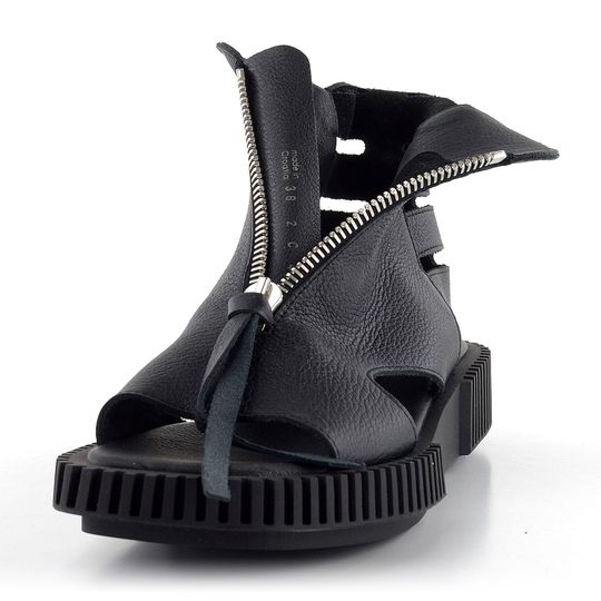 Originální dámské kožené sandály v římském stylu, s funkčním předním zipem a robustní podešví.