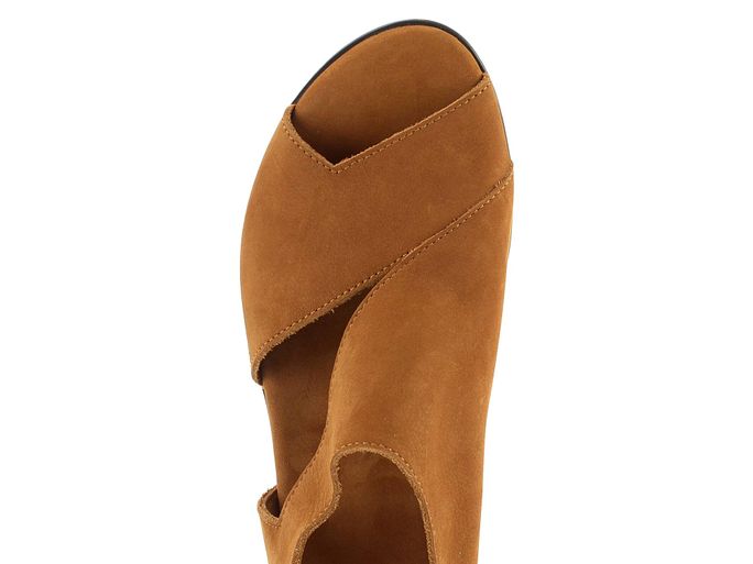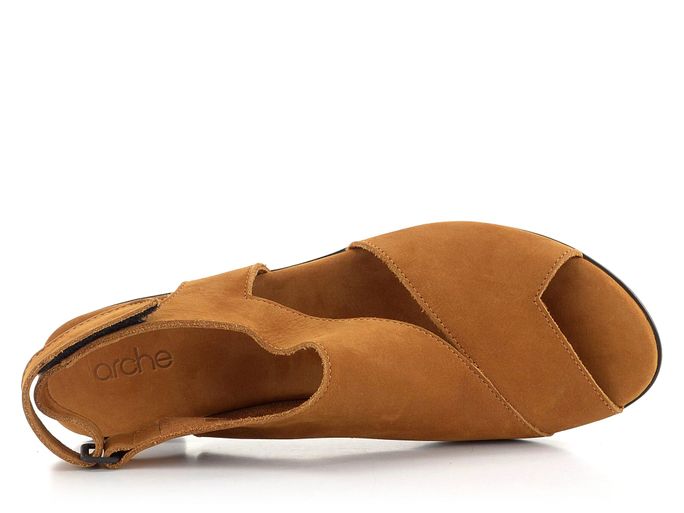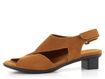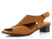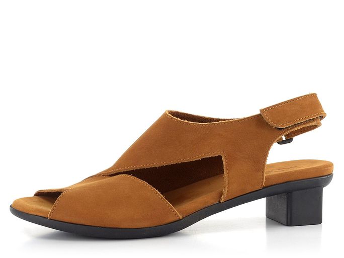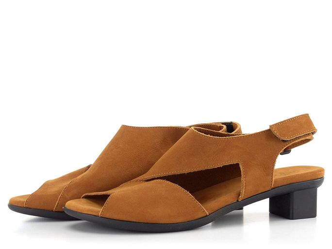 Dámské kožené sandálky v přírodní hnědé barvě s upínáním na suchý zip a na nízkém, stabilním podpatku.