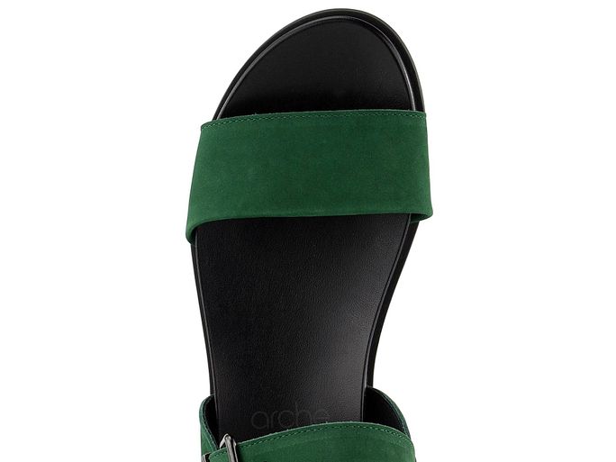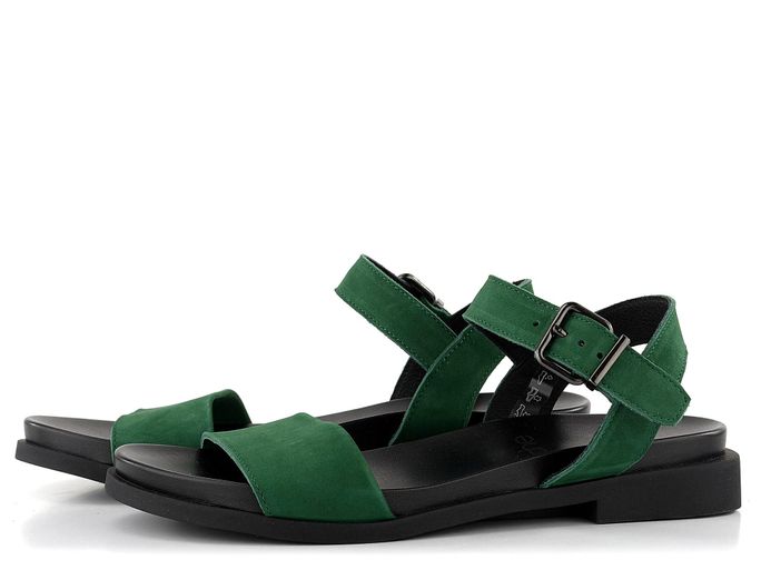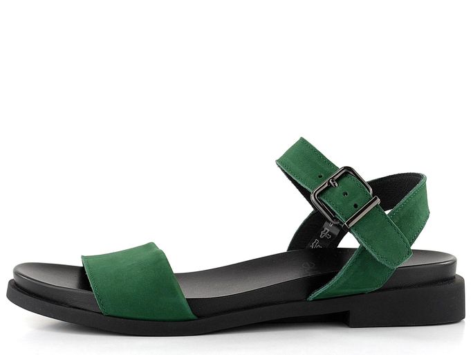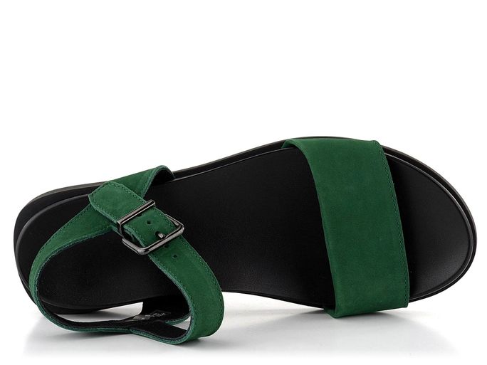 Luxusní dámské kožené sandálky v tmavě zelené barvě, s měkkou tvarovanou stélkou a nízkým podpatečkem.