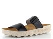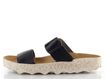 Pohodlné dámské pantofle se širokými pásky z eko kůže v černé barvě.