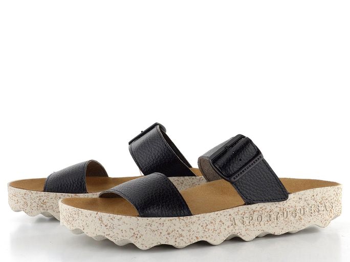Komfortní dámské pantofle od značky Asportuguesas kombinují styl a udržitelnost v jednom. Tyto páskové boty se pyšní širokými pásky z měkké eko kůže, která je šetrná k životnímu prostředí. Anatomicky tvarovaná stélka a nastavitelný nártový pásek se sponou zajišťují pohodlí na každém kroku. Podešev z unikátní směsi gumy a přírodního korku s hrubým vlnkovitým vzorkem nabízí výbornou flexibilitu a odolnost. S elegantní černou barvou a výškou podpatku 3,5 cm jsou tyto pantofle ideální pro městské procházky i lehké vycházky do přírody. Zvolte kvalitu a styl, který respektuje přírodu.