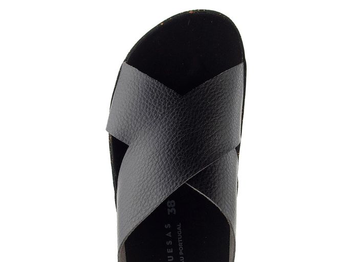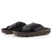 Pohodlné dámské pantofle se širokými kříženými pásky z eko kůže v černé barvě.