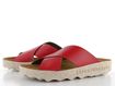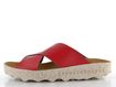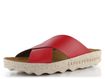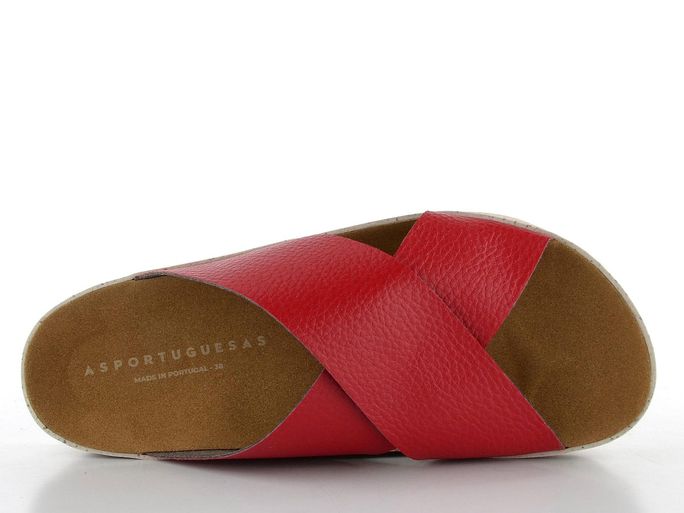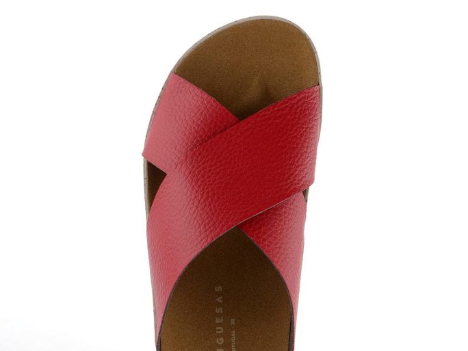 Pohodlné dámské pantofle se širokými kříženými pásky z eko kůže v červené barvě.