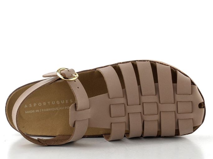 Komfortní dámské sandály od udržitelné značky Asportuguesas jsou ideální volbou pro jaro a léto. Tyto sandály s uzavřenou špičkou a anatomicky tvarovanou stélkou poskytují maximální pohodlí a podporu pro vaše nohy. Vyrobeny z měkké eko kůže s matným povrchem, představují elegantní spojení stylu a udržitelnosti. Béžová barva s šedým nádechem se snadno kombinuje s různými outfity.