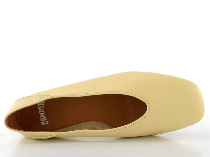 Dámské baleríny od značky Camper jsou ideální volbou pro jarní a letní dny. Tento model K201253-046 v jemné pastelově žluté barvě přináší eleganci a pohodlí do každého kroku. S uzavřenějším střihem do karé špičky a ozdobnými švy na patě se skvěle hodí k různým outfitům, od casual po formální.