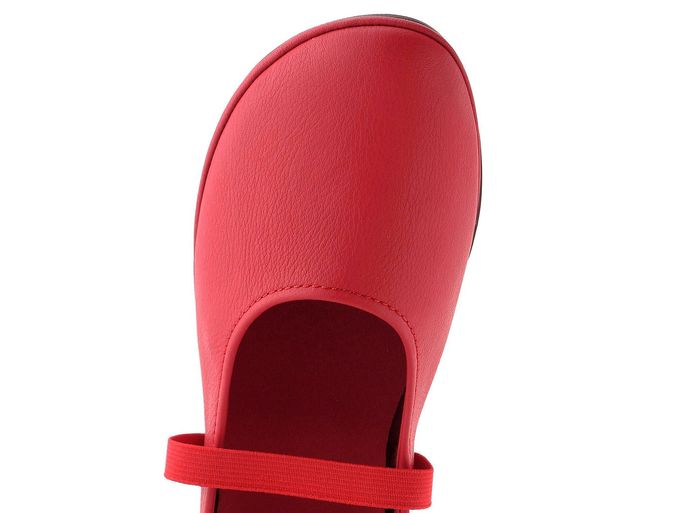 Pohodlné dámské baleríny ve stylu barefoot, z hladké kůže v červené barvě s gumičkou přes nárt.