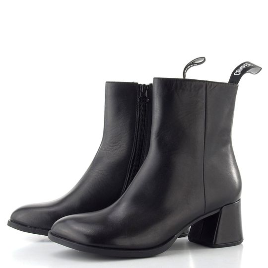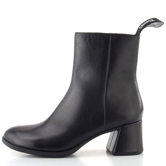 Dámská zimní kotníčková obuv od značky Camper spojuje eleganci a pohodlí v jedinečném designu. Tento model, vyrobený z hladké kůže v oblíbené černé barvě, je ideální pro každodenní nošení. Prostorná špička skvěle kopíruje tvar prstů, zatímco zip na vnitřní straně usnadňuje obutí. Textilní podšívka zajišťuje komfort, i když kotník není zateplený. Stabilní 5,5 cm vysoký podpatek a flexibilní latexová podešev poskytují potřebnou oporu a pohodlí po celý den. S nápadným poutkem v zadním lemu se tento model stává nejen praktickým, ale i stylovým doplňkem vašeho šatníku.