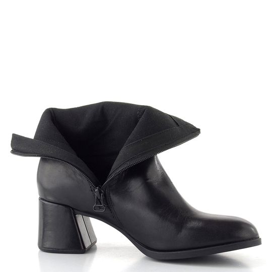 Elegantní dámský nezateplený kotník z hladké kůže, s postranním zipem a stabilním podpatkem.