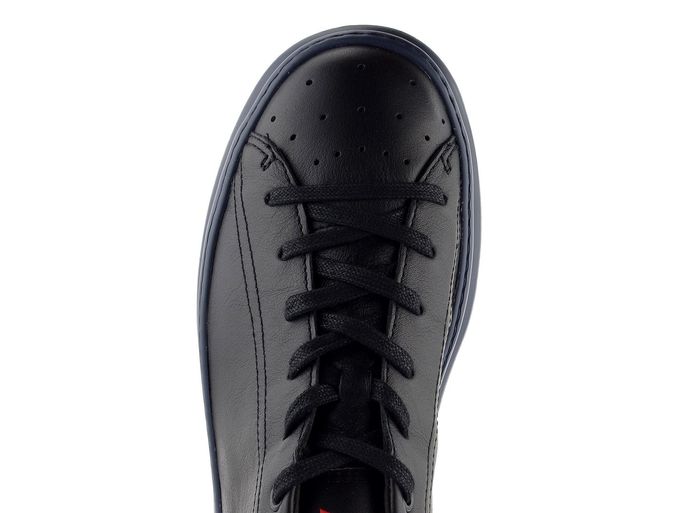 Stylové pánské polobotky od značky Camper přinášejí kombinaci elegance a komfortu, ideální pro každodenní nošení. Vyrobené z velmi jemné a poddajné kůže s přirozenou strukturou, tyto boty vynikají prostornou kulatou špičkou a černou barvou, doplněnou červeným logem na jazyku a tmavě modrou podešví. Díky ozdobné perforaci na špičce a polstrovanému kotníkovému lemu poskytují nejen stylový vzhled, ale i pohodlí. Lehká a ohebná syntetická podešev zajišťuje flexibilitu a odolnost. Tyto boty jsou perfektní volbou pro ty, kteří hledají kvalitu a autentický design v městské obuvi.