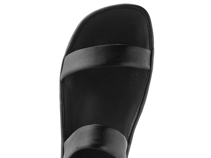 Dámské sandály od značky Camper kombinují styl s pohodlím, což z nich činí ideální volbu pro jarní a letní dny. Tyto kožené sandály v elegantní černé barvě mají prostornou špičku, která přirozeně kopíruje tvar prstů, a širokou gumičku místo tradičního patního pásku pro maximální komfort.