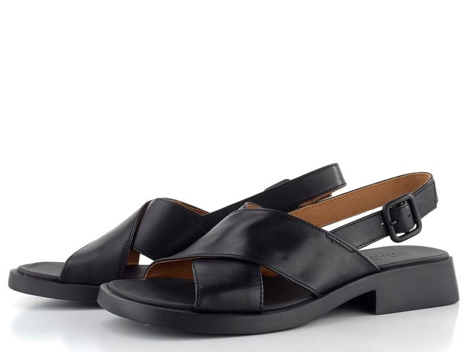 Tyto dámské sandály od značky Camper představují perfektní spojení stylu a komfortu. Jsou vyrobeny z pevné hladké kůže a mají prostorný střih s hranatější špičkou, což zajišťuje pohodlí po celý den. Díky patnímu pásku s regulační sponkou se snadno přizpůsobí vaší noze. Celokožená podšívka a měkčená stélka přispívají k pocitu luxusu při každém kroku. Lehká a odolná podešev z inovativního materiálu XL EXTRALIGHT® Organix 3.0, který využívá 30 % surovin z organického odpadu, podtrhuje jejich udržitelnost. Nízký, široký podpatek o výšce 3,2 cm dodává sandálům elegantní vzhled, aniž by snižoval jejich pohodlí.
