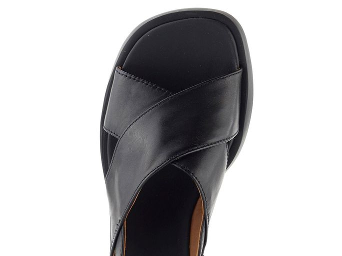 Komfortní dámské kožené sandály s kříženými pásky, širokým podpatkem a extra lehkou podešví.