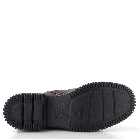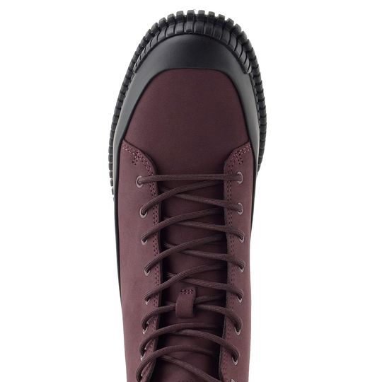 Dámský kotník od značky Camper spojuje osobitý design s praktičností. Vyrobený z nubukové kůže v tmavé vínové barvě, tento model je ideální volbou pro podzimní a zimní dny. Šněrování s kulatými tkaničkami a praktický zip na vnitřní straně zajišťují snadné obutí, zatímco textilní podšívka poskytuje komfort po celý den. S výškou obuvi 11,5 cm a robustní, ale lehkou podešví s designovým profilem se stanete středem pozornosti. Vyjímatelná pěnová stélka potažená textilií dodává na pohodlí, což oceníte při každém kroku. Tento model je skvělou volbou pro každou příležitost, ať už se chystáte do města, do kanceláře nebo na formální událost.