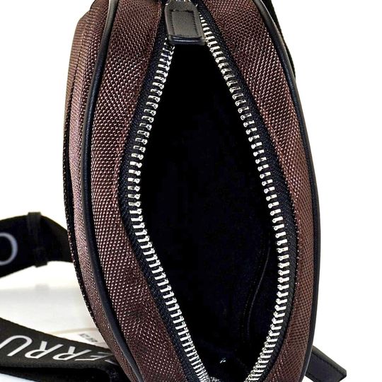 Pánská crossbody kabela s pevného textilního materiálu s nastavitelným popruhem.
