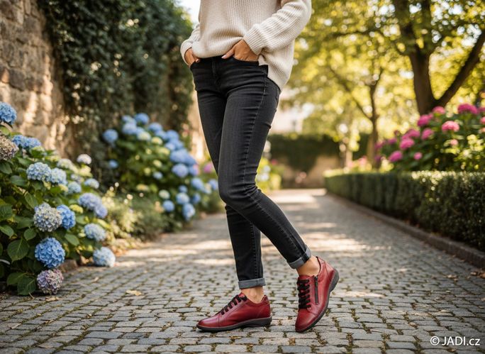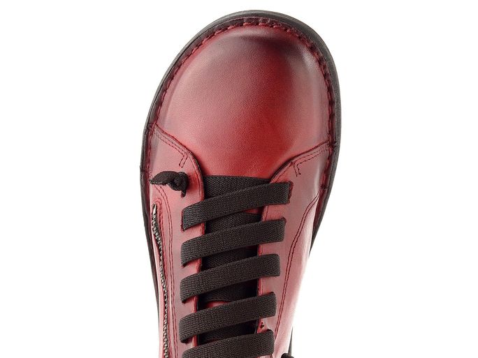 Dámské kožené polobotky v červené barvě s pružným šněrováním a zipem pro snadné obutí.