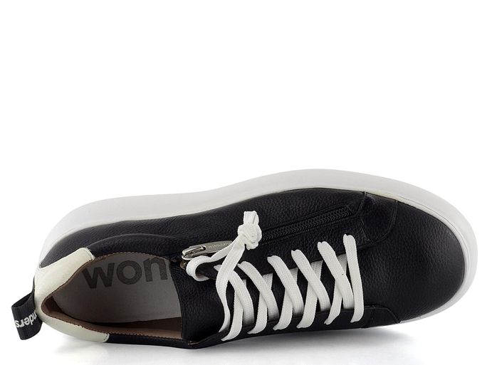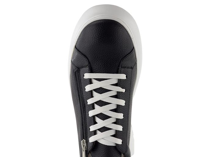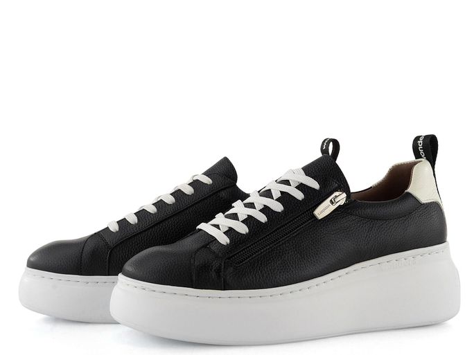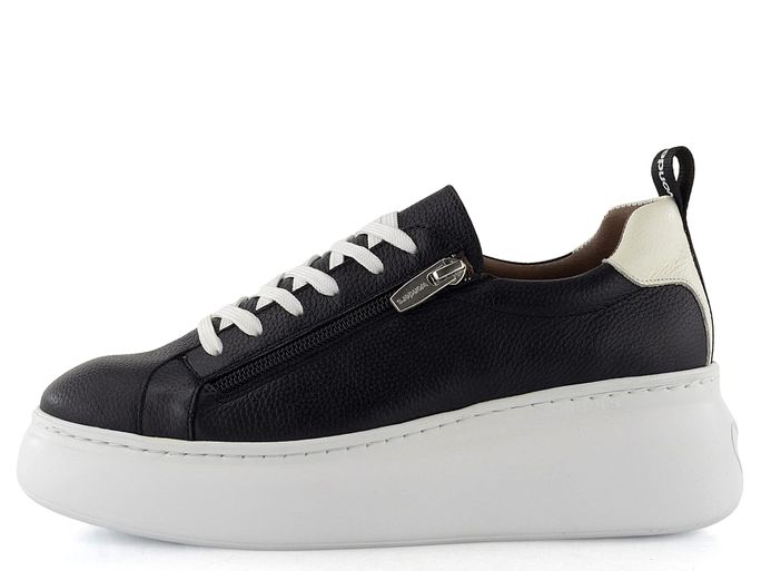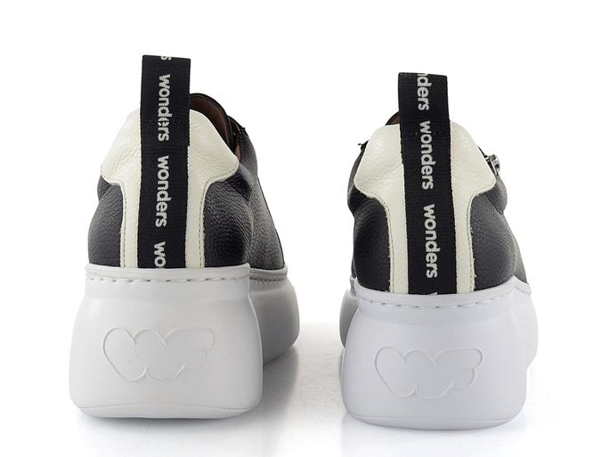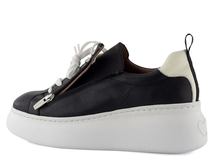 Designové kožené dámské polobotky v černo-bílém provedení, na vysoké platformě s klínkem.
