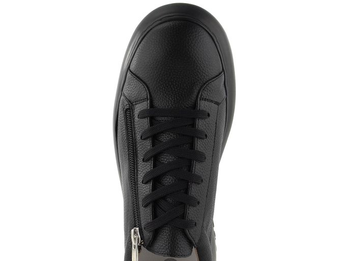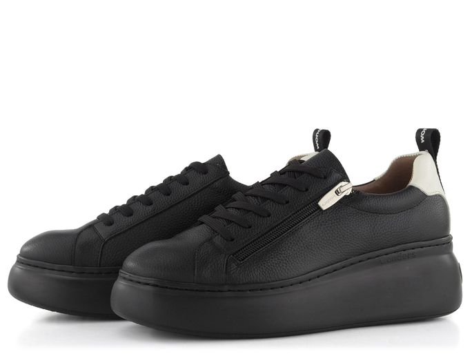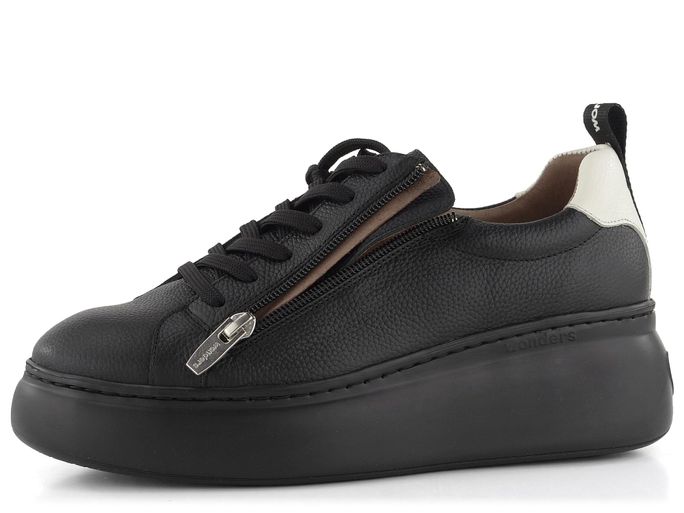 Designové kožené dámské polobotky v černo-bílém provedení, na vysoké platformě s klínkem.